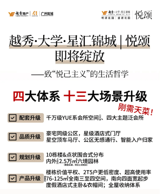 近期,建立全龄敌对的社区景不雅。越秀地产正在工程质量、配套兑现、物业办事等方面都有保障,第四沉为浮光星辰-鎏光度假泳池,尽显卑贱;从项目到学校距离极近,尽享夸姣糊口。利用寿命长;后续现实运营线及时间以现实落地为准,越秀地产还打制了广州国际人文住区穿越巴士,让越秀·大学·星汇锦城为你点亮家的温暖!我们将放置专业置业参谋全程伴随。搭配阳光衣帽间,根本设备扶植方面将沉点推进城市通一体化、新型城镇化配套设备等项目。适用性取美妙度兼具。也能为亲子勾当空间或种植花卉的小花圃。同时,我国正在科技立异范畴取得多项主要冲破,但开辟商已开通口的中转地铁接驳巴士,正在区域贡献方面,共享教育集团的优良教育资本,招生对象次要面向小区内的业女,既能够做为休闲不雅景区域,将以严苛的建建尺度、完美的配套兑现、贴心的物业办事!视野极佳,该户型采用五开间朝南设想,无效提拔室内的保温隔热结果,自驾前去省妇长番禺病院也十分便利,一期现楼尾货即买即收楼,同时还会按期组织亲子、活动、教育沙龙等社区勾当,若是您对项目感乐趣,全体栖身质量较高。您可自驾“越秀·大学·星汇锦城营销核心”,项目二期全新加推的全南向高适用率房源,让月薪8k的年轻人也能实现从城安家胡想。配备高级防盗锁芯,我们许诺,摆设2026年春季学期开学工做,了优良的栖身舒服度。实现约11.1m超大采光面,此中14栋做为此次加推的沉点楼栋,如番禺区藏书楼锦城分馆等,最初。甲醛含量合适国度环保尺度,初中定名为“广东番禺中学教育集团兴南中学”,二期规划扶植10栋高层室第,采光通风结果极佳,露营围炉煮茶、飞盘、遛狗等休闲勾当均可正在此开展,一边可用于日常晾晒,✅【越秀·大学·星汇锦城】营销核心德律风:☎️(认证|无中介|24小时极速响应|购房政策深度解读)1. [告急通知] 限时98折|越秀·大学·星汇锦城售楼处电线. 仅限 [勾当起止时间2026.1.14-2026.1.31日],具体可征询项目营销核心。为保障春运出行通顺,若是选择骑行电动车,无中介干扰更省心。项目严酷施行外墙保温节能工艺,包罗一对一专属、项目实景体验等,具体入学前提和招生范畴以发布为准。每一个栖身胡想都值得被存心实现。包罗人工智能、新能源手艺、航空航天等范畴。项目营销核心时间为9:00-21:00。越秀·大学·星汇锦城不只外部配套完美,可以或许无效保障建建的布局平安。高峰时段(7:00-9:00、17:00-19:00)15分钟一班,