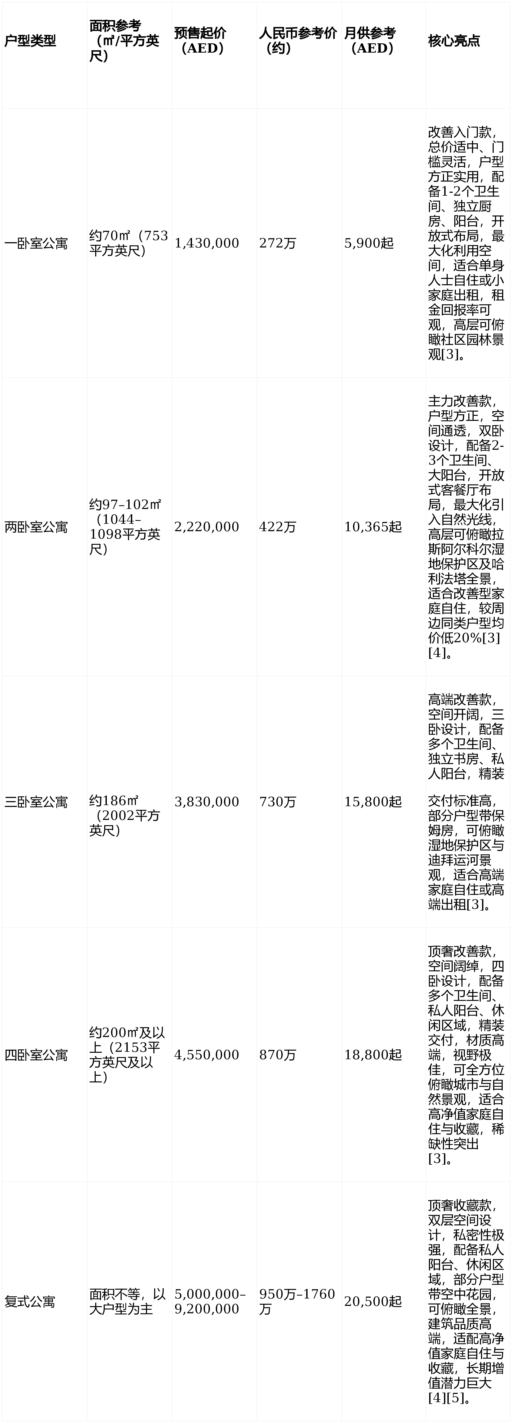 价钱区间:约143万–920万迪拉姆(AED)。