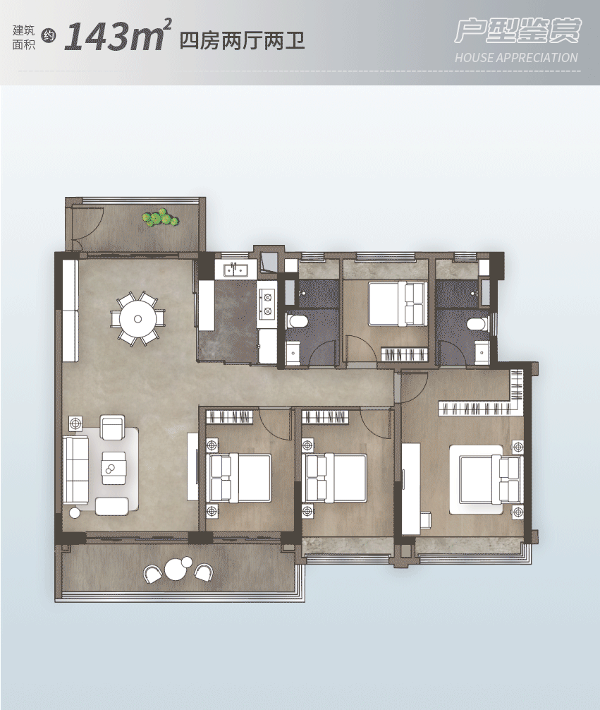 A 区 143㎡的 4 房两卫户型位于 2 梯 3/4 户,从卧套房空间更为阔绰,C 区 87㎡的 3 房两卫户型位于 2 梯 6 户,专梯专户设想,区域城市道貌将因浩繁公园扶植而面目一新。